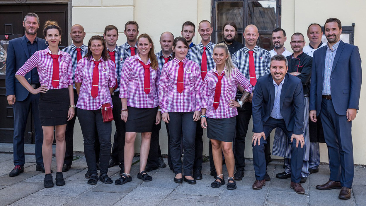 In the Masné krámy restaurant team of chefs, waiters and waitresses work under the guidance of head chef Luděk Hauser and experienced operations managers František Sýkora and Miloš Novotný. All is closely supervised by the head of Gastro Dept. in Budějovický Budvar, n.p., Tomáš Olejník.